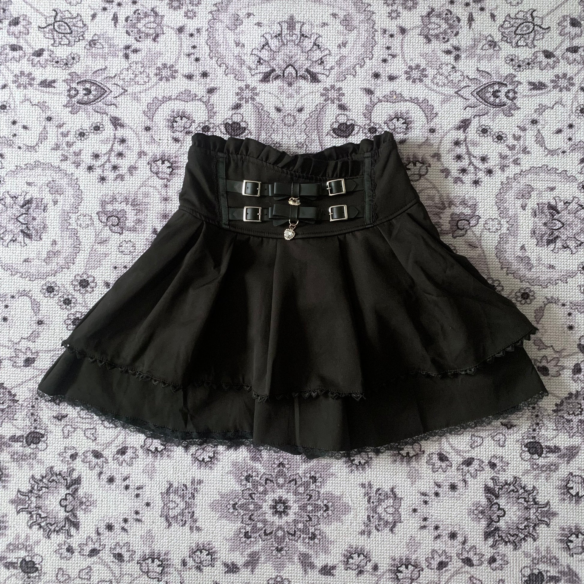 Jirai kei or Ryousangata black skirt with heart charms and a side zipper + stretch and lace up back.
